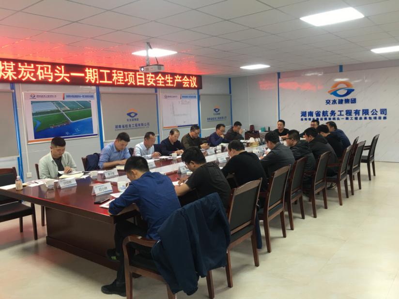 为加强建设项目安全管理,4月20日,岳阳铁水集运煤炭码头一期工程召开4月份安全生产会议,集团党委委员、监事会主席刘宝山,党委委员、副总经理刘新民等参加。