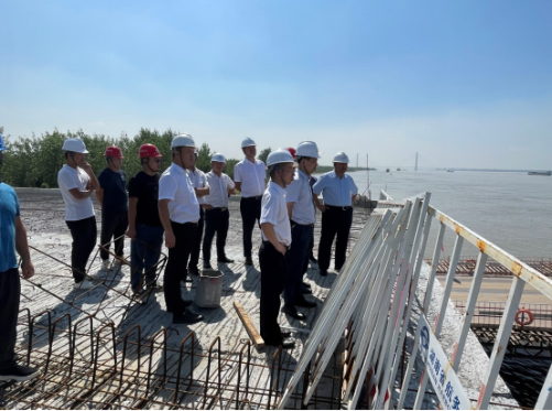 蒋鹏飞一行深入现场,详细了解项目安全生产、质量管理和进度情况,现场研究解决工程建设存在的问题,并对项目建设克服外部复杂的施工环境实现时间过半任务过半,给予了充分肯定。