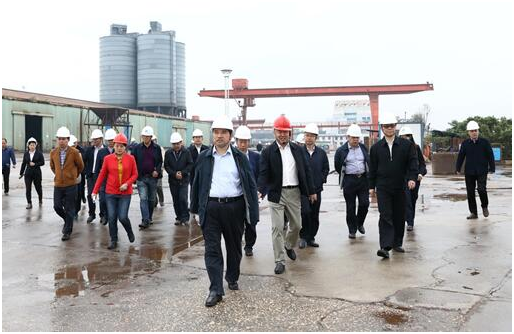蒋鹏飞在现场仔细询问生产经营情况以及项目建设进度,当听到城陵矶老港利用春季雨水充沛的有利时机,全面完成岸线复绿时,连连点头称赞,叮嘱抓好安全生产,加快项目进度,按照省委、省政府要求,确保老港环保提质改造主体工程年底完工。