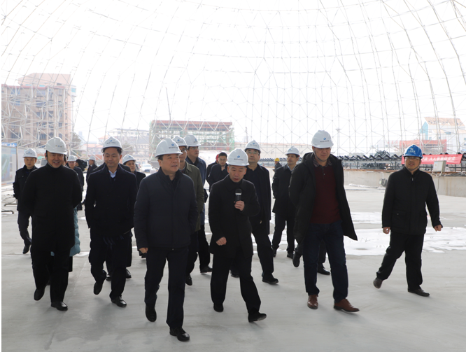 陈飞一行通过施工现场的安全通道,仔细查看了现场施工情况,并详细询问改造项目整体规划、生产工艺、建设进度,以及“胶囊”型散货封闭仓库环保、安全设计等相关情况,徐国兵一一作了汇报。