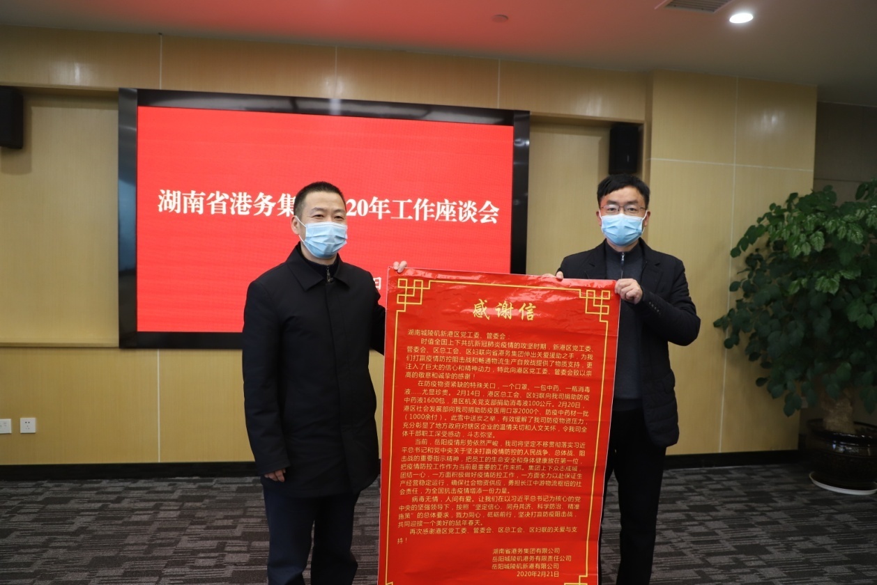 省港集团向新港区在防疫期间给予的防疫物资支持表示感谢,并送上感谢信。徐国兵介绍,疫情防控期间,省港集团全力担当,不停产保供应,组织有序、措施有力、协同防疫,成效显著。特别是城陵矶老港今年完成了进出港量350万吨,同比增长18%,商品车业务较同期也有大幅增长。受疫情和经济下行影响,生产经营压力很大,省港集团将压实责任,努力实现全年目标任务并全力推进项目建设。同时,希望新港区能给予更多的关心和政策支持。