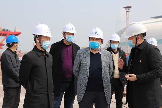 “现在施工人员有多少,复工后疫情防控做得怎么样?”蒋鹏飞来到钢结构大棚和外贸码头,一边现场查看工程进展,一边询问身边陪同人员,对项目如期复工表示充分肯定。当得知受疫情影响,因住宿问题无法增加工人时,他要求千方百计联系住所,增加项目施工人员,做好住地与工地间专车接送和防疫措施,实现项目建设提速增效。