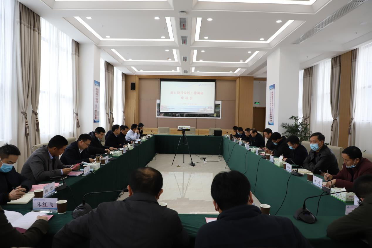 3月31日下午,城陵矶新港区党工委副书记、管委会主任王文华来到省港务集团,召开座谈会专题调研港口建设发展工作。新港区党工委委员、管委会副主任郭韶山以及新港区相关部门负责人陪同调研。省港务集团党委书记、董事长徐国兵及全体班子成员、相关部门负责人参加座谈。