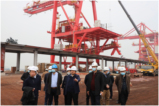 4月4日上午,清明小长假第一天,省水运投集团党委书记、董事长蒋鹏飞率安全管理部、企业管理部、工程技术部等相关部门负责人,来到城陵矶港环保提质改造项目,继3月10日后不到一个月,再次指挥调度项目建设。省港集团党委书记、董事长徐国兵,党委副书记、纪委书记王兵,班子成员陈湘、尹显东、刘新民、黄红晖陪同。
