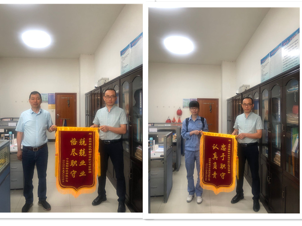 5月26日上午,中仓国际物流有限公司总经理廖辉、湖南瑞源石化股份有限公司业务主管甘霖专程来到岳阳新港公司赠送锦旗,感谢新港公司安监员及时发现并成功处置危化品箱泄露,为该公司消除了一起重大安全隐患。
