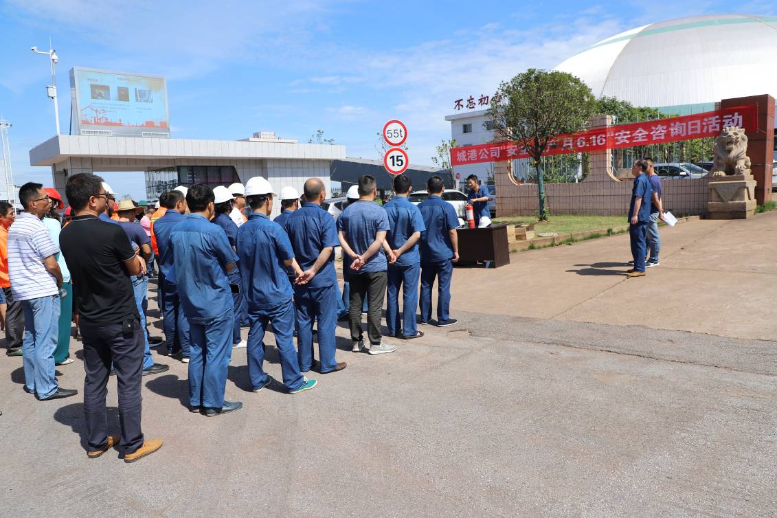 6月16日上午,城港公司举行了一场别开生面的“安全宣传咨询日”活动。作为今年“安全生产月”的一项重要内容,此次活动以“消除事故隐患、筑牢安全防线”为主题,省港集团党委委员、监事会主席刘宝山出席活动,城港公司一线部门负责人及相关职工60余人参加。