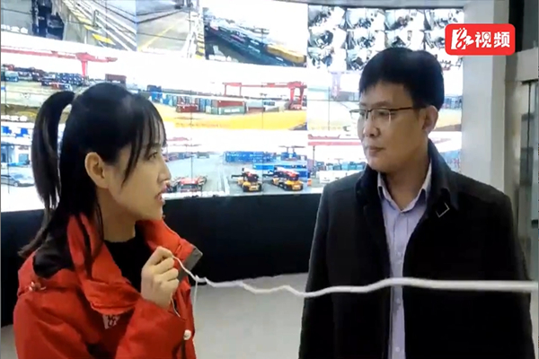 红网岳阳站记者罗玲在岳阳城陵矶港采访。