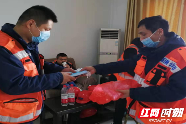 公司给员工发放防护口罩。