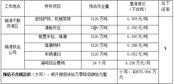 (二)上表作业量为预估值,仅供投标人参考,不作为结算依据,最终结算以实际作业量为准。投标人应对市场进行考察预判,自行承担风险与收益。