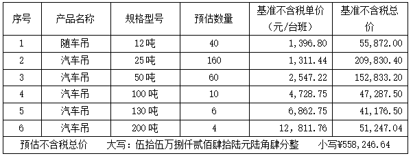 4、供应商应按采购人要求的型号提供相应的汽车吊,如供应商因自身原因只能提供更大型号的汽车吊,按采购人通知要求的型号的汽车吊台班费用进行结算。