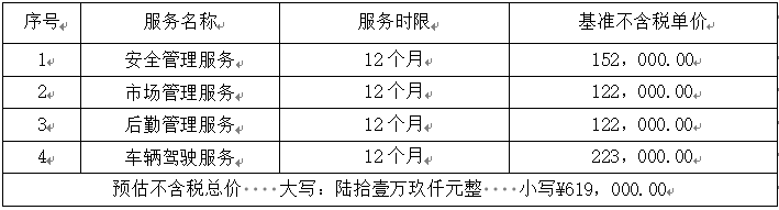 (一)采购范围:安全管理服务主要协助有关部门在项目建设、生产运营期间做好隐患排查治理、安全教育培训、制度台账建设;市场管理服务主要协助有关部门做好腹地市场开拓,维护客群关系、收集市场信息、提供市场发展建议;后勤管理服务主要协助有关部门做好档案、会议、食堂、宿舍、公车管理;车辆驾驶服务分别负责2辆公务用车驾驶、日常点检、送修送保。