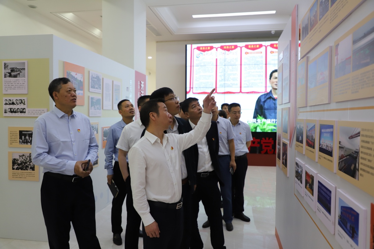 5月25日上午,省港务集团党委书记、董事长徐国兵带领党委班子成员和高管王兵、刘宝山、陈湘、尹显东、刘新民、黄红晖、李建红,参观“红色基因·砥砺奋进”党史港史图片展。