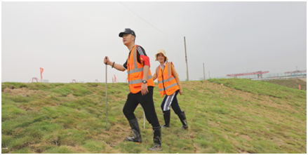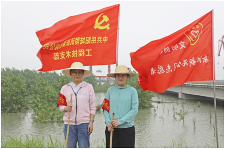 7月15日上午8点,省港集团投资发展部青年女党员周庆娴,身着反光衣、脚穿套鞋、手拿竹竿,走上长江大堤省港责任段,开始一天的巡堤查险。就在前一天,党群宣传部的青年女党员姚敏主动请缨加人防汛突击队,成为集团第一个巡堤查险的女员工。