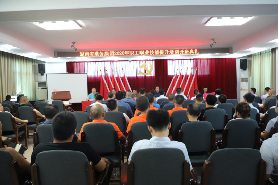 为提高集团公司港口生产一线职工操作技能水平,加强集团公司技能人才队伍建设,提升职工职业技能等级,根据集团公司年度培训工作安排,充分发挥岳阳职业技术学院给培养操作技术人才的优势,践行《湖南省职业技能提升行动实施方案(2019-2021)》,集团公司决定联合岳阳职院举办2020年职工职业技能提升培训。2020年8月17日,职工职业技能提升培训班开班典礼隆重召开,集团公司党委委员、副董事长陈湘,岳阳市人社局职业能力建设科副科长上官衍忠,岳阳职院党委委员、副院长彭利余等领导出席本次开班典礼并讲话。